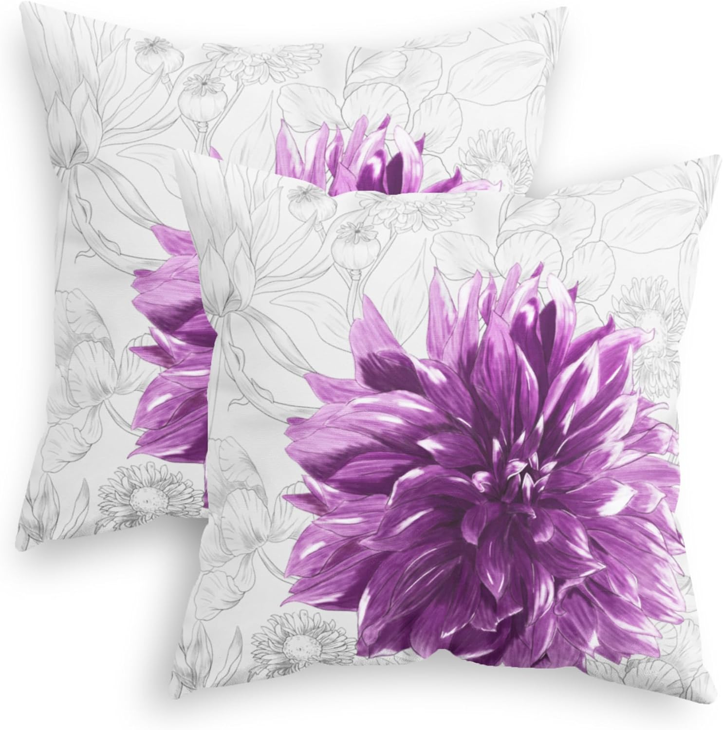 CaliTime Throw Pillow Covers Decorative 22 X 22 Inches Pack of 2 Cozy Fleece Colorful Dahlia Flower Simple Strokes Flora Background Cushion Cases for Couch Bed Sofa Farmhouse Decoration Teal Grey