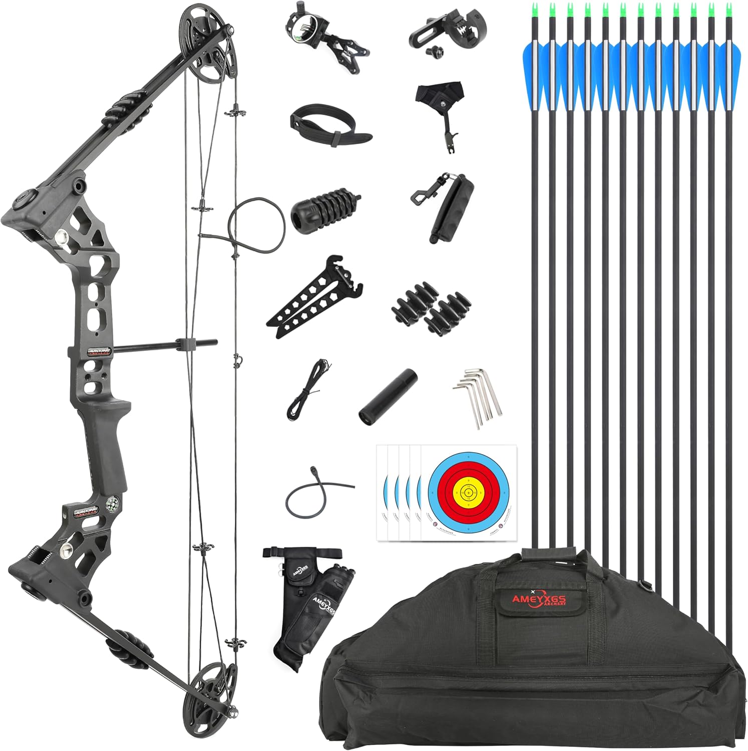 Product Details: Draw Weight: 20-70 lbs adjustable Draw Length: 24-30 inches Brace Height: 7.3 inches Axle-to-Axle: 34 inches Let-off Ratio: 80% Arrow Initial Velocity: 320 fps Bow Limbs Material: Gordon S-Class Bow Limbs (High Strength Fiberglass) Bow Handle Material: Metal Alloy Product Size: 90.5x32.5×5cm Package Size: 99x33x7.5cm Product Net Weight: about 1790g Weight with Package: about 2500g Set: 1*Release Aids 1*Arrow Puller 1*Bow Stand 1*Arrow Quiver 1*Bow Case 95cm 1*Bowstring Wax 1*D-loop Rope (1m) 1*Allen Key 1*5 Pine Sight 1*Arrrow Rest 1*Rubber Stabilizer 1*Bow Slings with strap 1*Rubber Peep Sight (3/16'' size) 5*Target Paper40X40cm 12*Mix Carbon Arrows Note: The above parameters are hand-measured there will be errors, the specific information is based on in-kind.