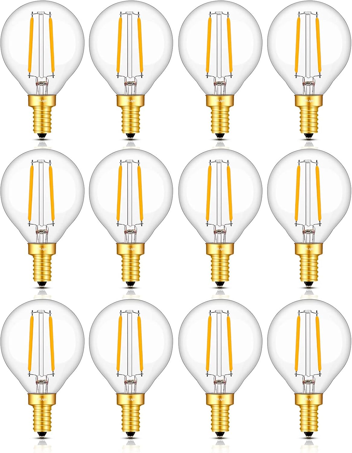 | Additional Features | Not-Dimmable Version, 25W Equivalent, 250 Lumens, 2500K Warm White Glow, Tiny G16.5 Amber Globe Shape, E12 Candelabra Base, Instant On |