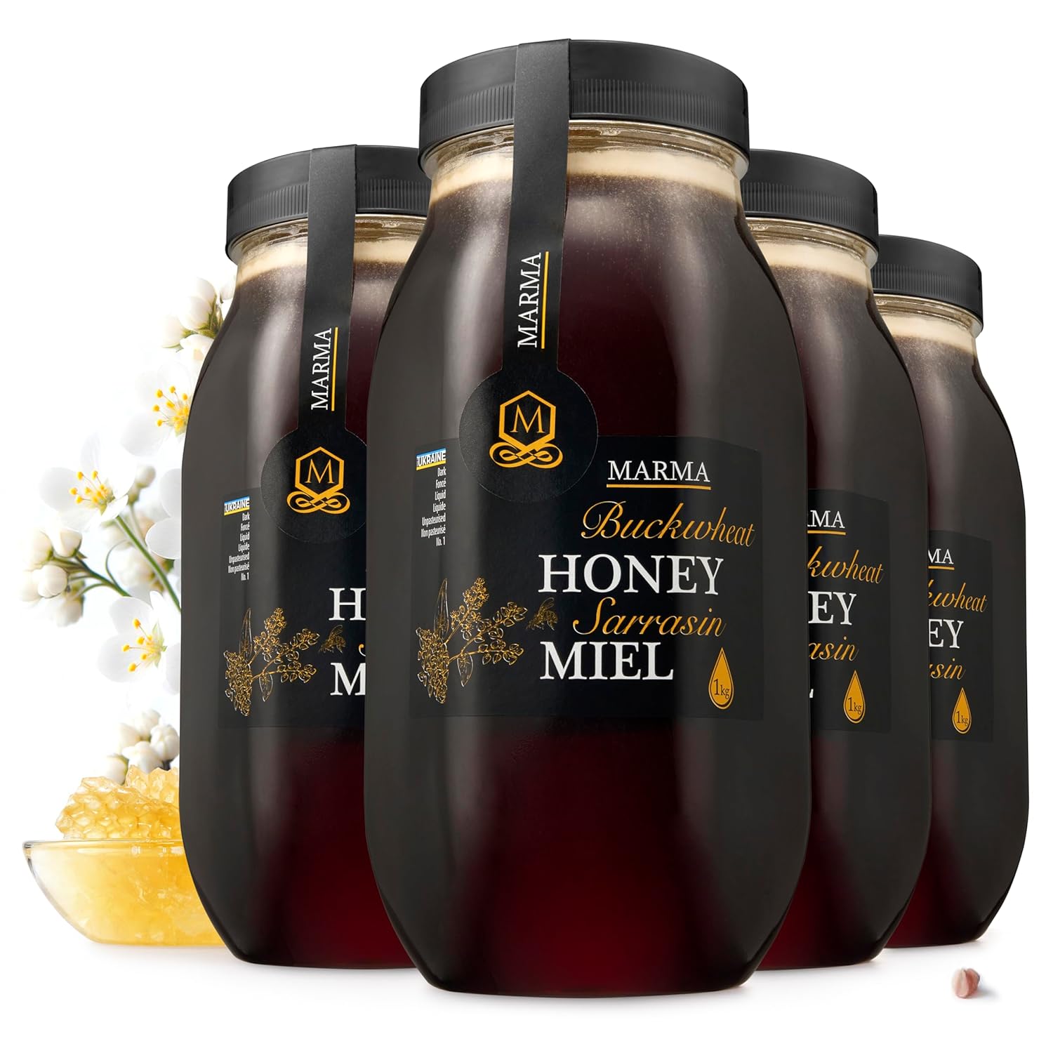 HONIGMA® Marma Sunflower Honey | Authentic Raw Honey from Ukraine | 100% Pure, Unpasteurized & Fully Crystallized | 1000g/35.2oz | Naturally Solid Texture | Pack of 2