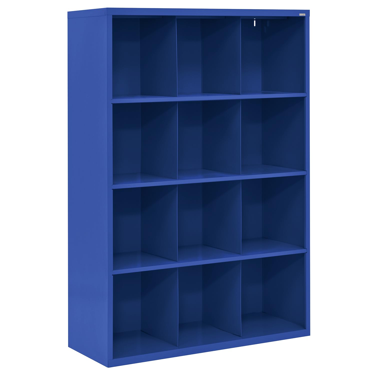 The Sandusky Lee Heavy Duty Welded All Steel Cubby Storage Cabinet is an ideal solution for organizing tools, equipment, personal belongings, or supplies in various environments, including schools, gyms, workshops, and garages. This metal storage cabinet features 12 cubby sections, each measuring 14.5 inches wide, 17.5 inches deep, and 15 inches high, providing ample space to keep items neatly arranged and easily accessible. The heavy duty storage cabinet's overall dimensions are 46 inches in depth, 18 inches in width, and 66 inches in height, offering a substantial storage capacity within a compact footprint. Constructed from robust welded steel, this cabinet is built for heavy-duty use, ensuring exceptional strength and durability to withstand frequent handling and demanding conditions. Its powder coat finish not only enhances protection against wear but also gives the cabinet a sleek and professional appearance, designed to provide both practical and safe storage solutions in any setting. Additionally, the cabinet is Greenguard certified, meeting stringent standards for low emissions to contribute to a healthier indoor environment by reducing exposure to potentially harmful chemicals.