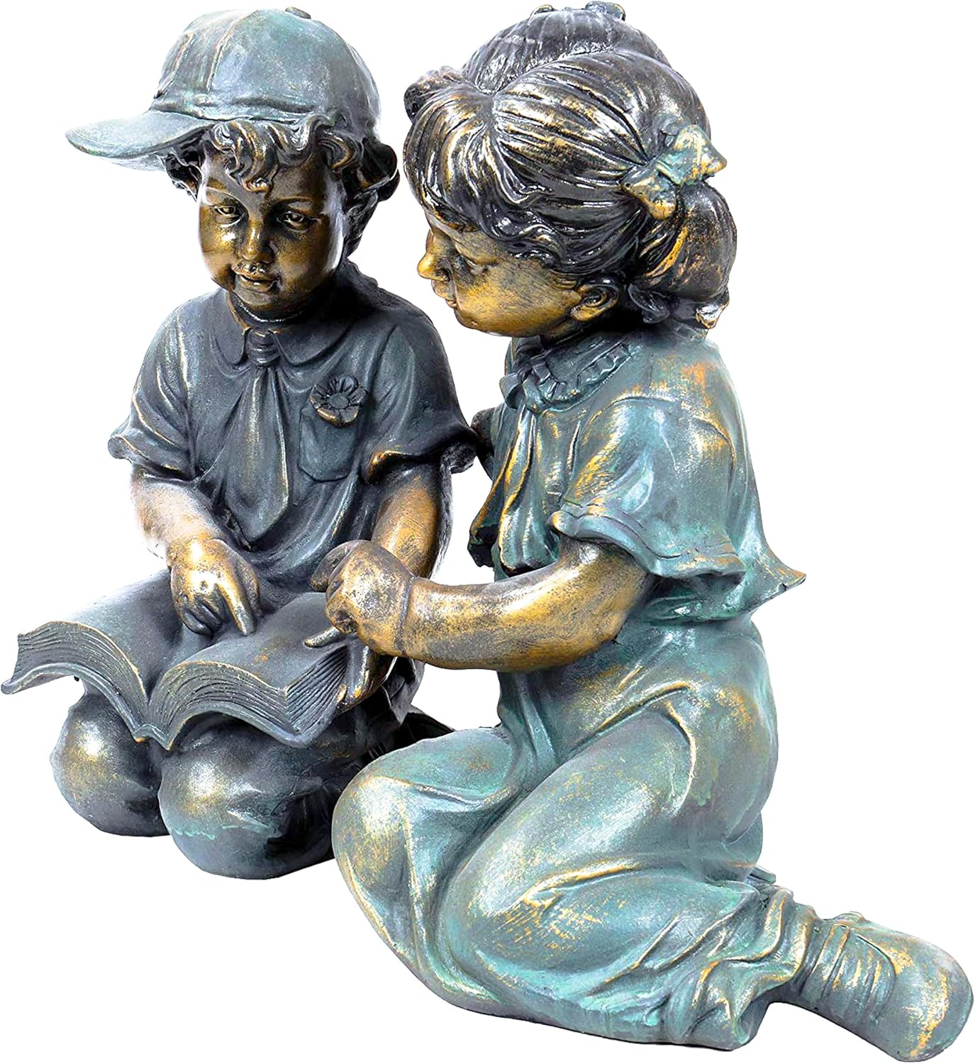 Add a touch of childlike whimsy to your outdoor space with the Alpine Corporation Boy and Girl Reading Statue set. This stunning 2-piece statue set is constructed of durable magnesium oxide with an antique bronze and patina finish to suit any outdoor space. The statues are weather-proof, rust-resistant, and durable for years of quality use. With their antique look, intricate details and portrayal of timeless children, these Alpine statues are sure to bring peace and tranquility to your home! The statue set is perfect for your garden, patio, deck, porch, or yard space. With a 1-year support, you can be confident in the quality of your purchase. Boy statue measures 9"L x 9"W x 19"H and girl measures 16"L x 10"W x 20"H, the perfect size for your yard. Alpine Corporation is one of America's leading designers, importers, and distributors of superior quality home and garden decor products. Alpine Corporation's award winning in-house design team continuously develops new and innovative "statement pieces" for your home and garden. Your indoor and outdoor living spaces will be the envy of the neighborhood with our wide assortment of fresh, fashionable and contemporary products, from beautifully crafted solar garden stakes featuring patented motion and fiber optic lighting technology to beautiful fountains and delightful bird baths and feeders.