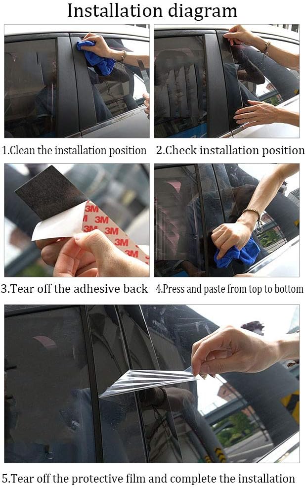 Installation Precautions: 1. Clean the surface of the car. 2. If you can find an adhesion promoter, it would be great to use on the car surface. 3. Remove the tape. 4. Use a hair dryer or a lighter to heat the tape slightly to make it stick more firmly 5. Press for 1 minute, please do not wash the car or get wet for 2 days after installation.