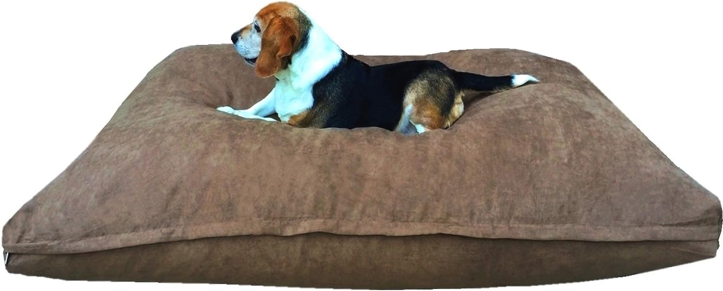 Large 41”X27” shredded mix foam pillow bed is excellent for medium breed dogs. Handmade in USA. The order comes with 1 Durable Canvas cover in olive green color on all sides and 1 shredded mix memory foam stuffing pillow secured with a breathable waterproof internal zipper cover. The pillow will arrive very tightly packed, please follow the instructions that came with the package to unwrap and allow 12 hours for this product to return to its original shape. Tired of the pet beds that easily tear, are difficult to clean and don't provide your pet the comfort they deserve? Dogbed4less offer the Best material for comfort, support, durability and truly easy to clean cover that blends in seamlessly to your home. Dogbed4less pet bed pillow products are made with high quality durable fabric and highly resilient mixed stuffing material to ensure the ultimate comfort and orthopedic support in balance, which are rarely sold elsewhere due to the higher cost & shipping weight.Our mix memory foam stuffing is 5 times denser and 3 times heavier than other polyfill stuffing, which will not flatten overtime and provide many years of comfort & support under normal use. 2 excellent layers of fabric covers: Internal layer Taffeta breathable waterproof fabric zipper cover to help secure the stuffing. The bed also comes with a durable 11 oz/yard canvas fabric zipper cover (41"X27"X4" size) for easy cleaning and maintenance. Our external canvas cover is 100% cotton made which is interchangeable for top or bottom side and great for pets that are allergic to synthetic fabrics. The external cover is machine washable and dry-able. Additional replacement cover, more sizes, and colors are available here by clicking the Dogbed4less link on the top.