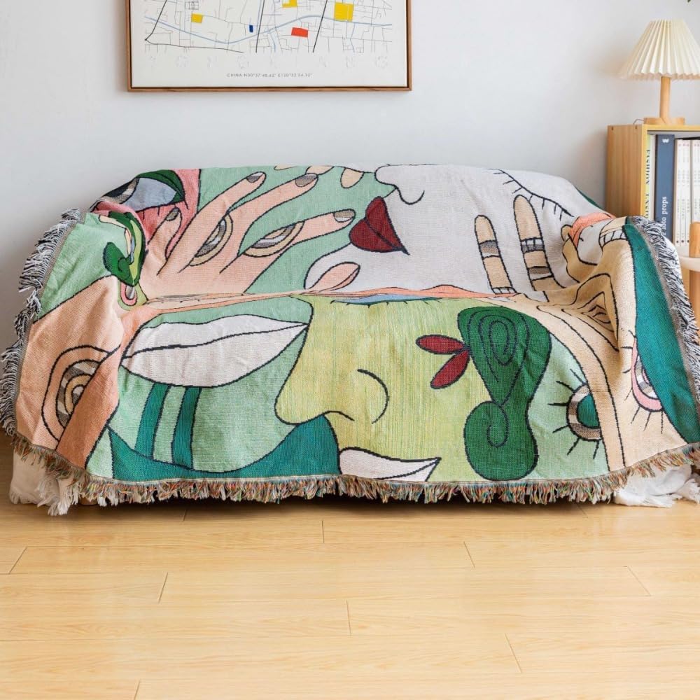 ULTRA SOFT & COZY: Our chair&safa throw blankets made of 100% high-quality cotton fabric which is warm and cozy to touch. Measures 50" x70" and weights 2.0 pounds ( 1000 g). Is a perfect choice for all season use. UNIQUE DESIGN: The farmhouse throw blanket has a very chic and vintage look. Our bohemian bed throw blanket provides a beautifully animal or floral geometric pattern on both the front and back,combined with various elements and bright colors. MULTY-FUNCTION: This versatile throw blanket is perfect to use as bed blanket,bed cover or light quilt. And keep your warm when in office or travel. Or can be used to decor your room,as sofa couch or chair cover blanket. These various color and printed element will provide bohemian and rustic style for your space. THE PERFECT GIFT: This 100% cotton throw blanket is a perfect gift choice for Mother's Day, Thanksgiving Day, Christmas and birthday. Our cozy throw blanket to relax and enjoy time with your family, children and adults all will love it. EASY TO CARE: Machine wash in cold water, gentle cycle, low temperature drying. Don't bleach. Do not dry clean. Warm tip: Because of the light, the product may have a slight color difference.
