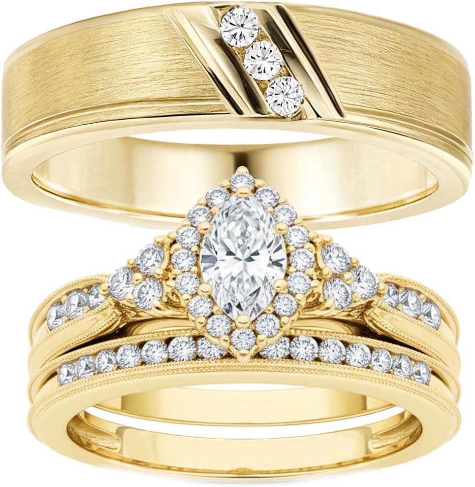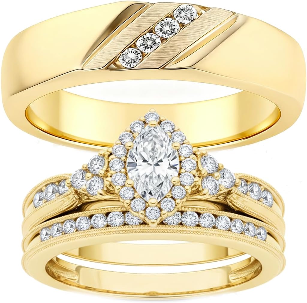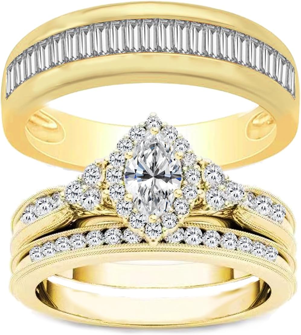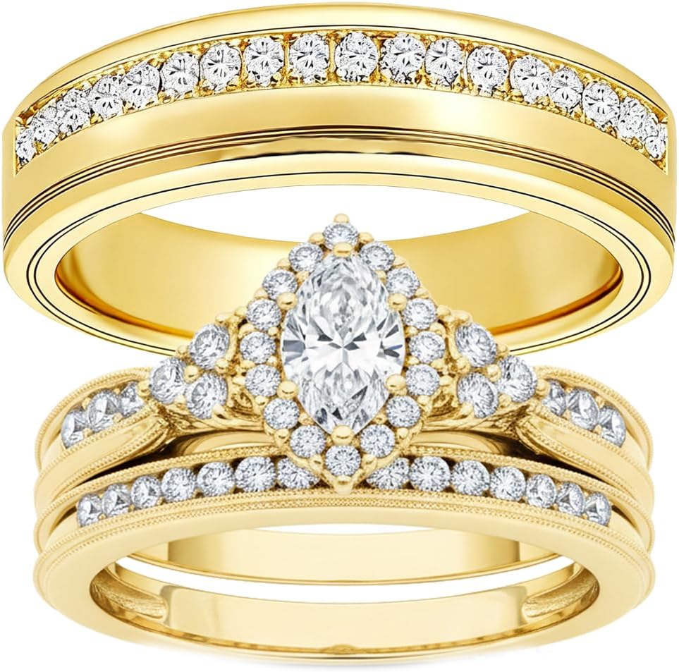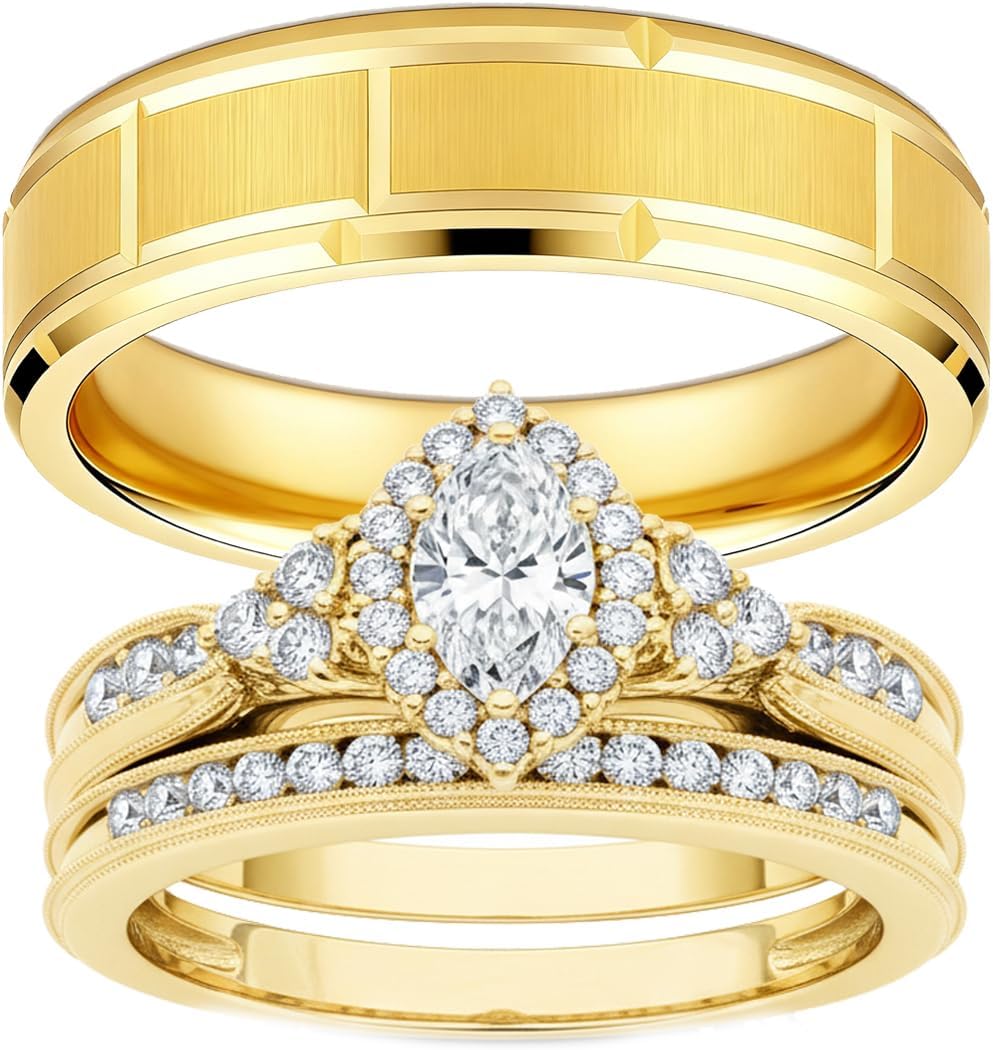 1-3 carat Moissanite couple engagement ring set bridal ring set wedding ring set matching ring set free engraving suitable for men and womenThis moissanite couple wedding ring set is exquisite, fashionable and unique. It is suitable for self-wear or as a precious gift, conveying deep emotions and unique taste, suitable for daily wear or attending formal occasionsMoissanite couple ring details:Material: 925 sterling silver/10k/14k/18k real goldMain stone carat: 1-3 caratsColor: yellow/white/rose goldPacking:1 x Moissanite couple ring1 x Polishing cloth1 x Gift BoxSuitable for many occasions:Wife giftSister giftFriend giftEngagement giftWedding giftMother's Day giftChristmas giftThanksgiving giftBirthday giftAnniversary giftValentine's Day giftFiancee's Day gift