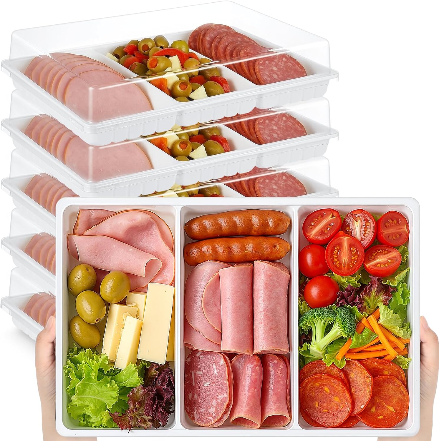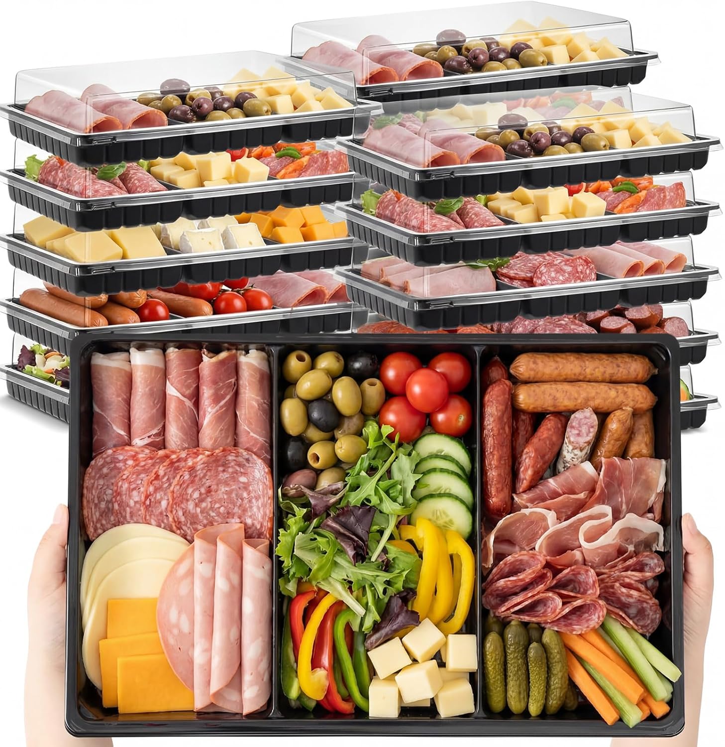 • Divided Serving Trays: our catering trays with lids allow you to separate different food items for a more organized and visually pleasing display; No more squeezing different foods together, ensuring an aesthetically pleasing and efficient serving experience