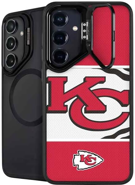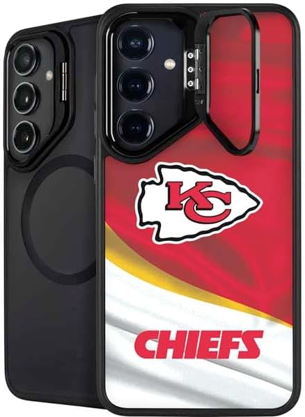 The NFL Kansas City Chiefs Large Logo Kickstand Case compatible with Galaxy S25 is the ultimate in versatile protection and convenience. Featuring an innovative lifted camera ring with a built-in stand, it allows hands-free video watching with adjustable angles from 0 to 150 degrees. This premium Kansas City Chiefs Case supports wireless charging and is fully compatible with MagSafe, offering a sleek design without compromising on durability or functionality.