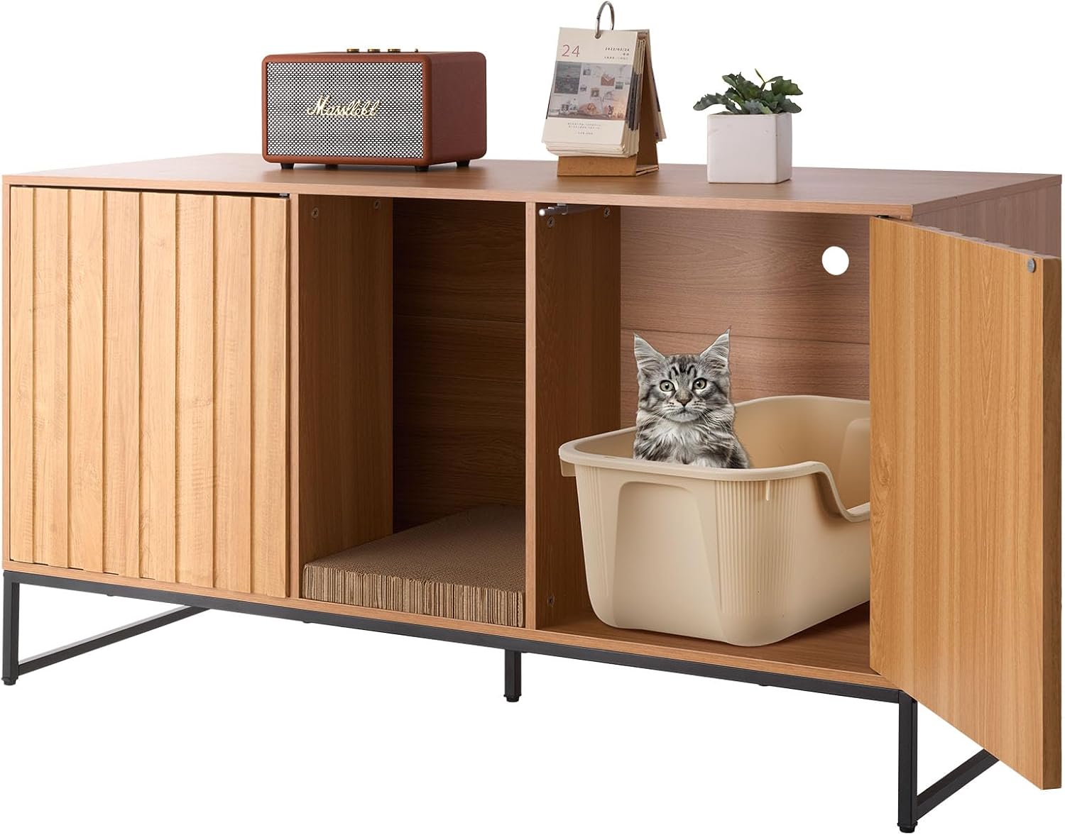 | Item Type Name | Cat Litter Box Enclosure Furniture, 27.6 in Hidden Litter Box Cabinet with Metal Legs & 2-Tier Storage Shelves, Waterproof Cat Washroom Cat House, Fit Most of Litterbox, for Living Room |